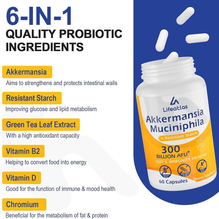 ✅Why Choose Lifeatlas Akkermansia: Our 300 billion AFU Akkermansia probiotic is designed with delayed-release technology to allow the probiotics to survive stomach acid and reach the gut. Our probiotics come in shelf-stable bottles, in slow-release capsules to ensure the probiotics are active and effective. Shelf-stable, Non-refrigerated, vegan probiotic, 60 capsules for 30-day supply. 100% MONEY BACK SATISFACTION GUARANTEE.