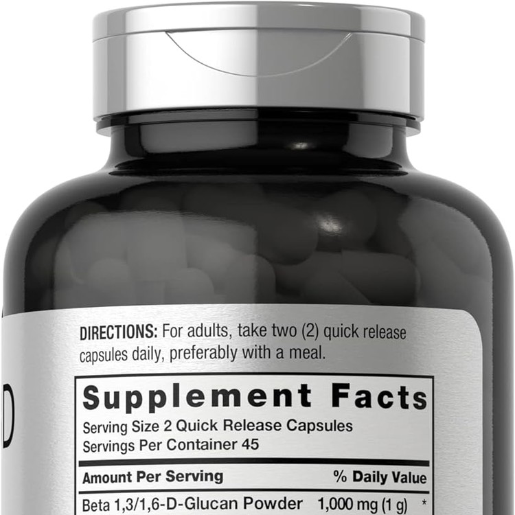 흡수: 빠른 방출 캡슐에 1회 제공량당 베타 1,3/1,6 D-글루칸 분말 1000mg 제공