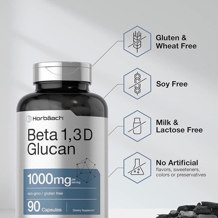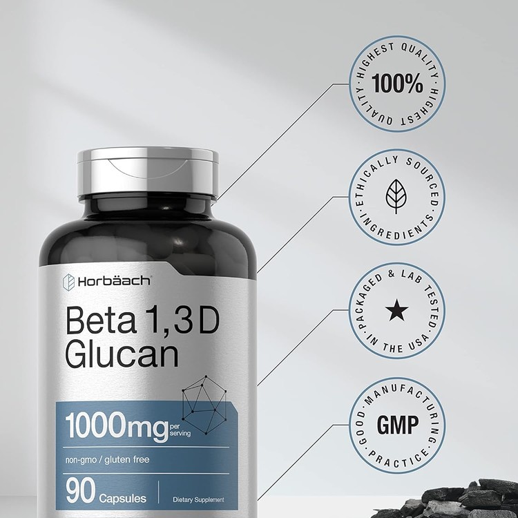 Horbaach Beta Glucan 1 3D 1000 mg | 90 Capsules | Beta 1,3, 1,6 D Glucan | Non-GMO, Gluten Free Supplement