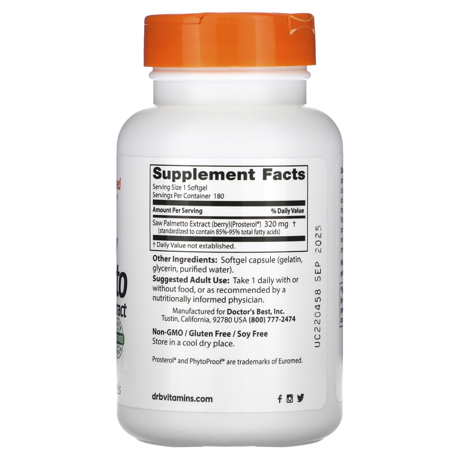 | 쏘팔메토추출물(열매)(Prosterol®) (총 지방산을 85%~95% 함유하도록 표준화됨) | 320mg | † |