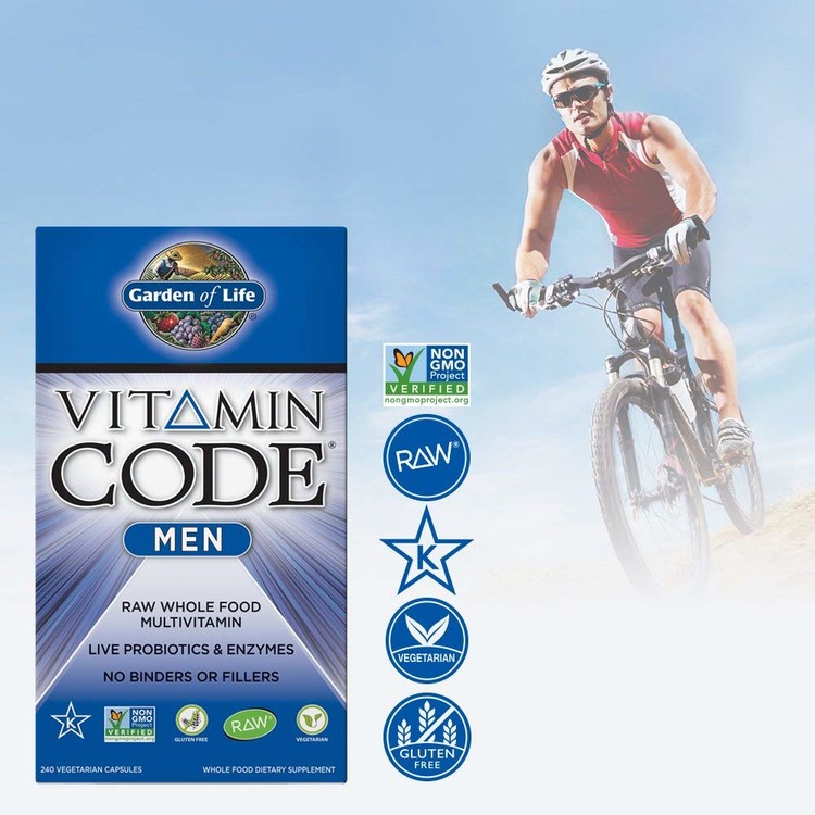 Garden of Life Vitamin Code Whole Food Multivitamin for Men - 240 Capsules, Vitamins for Men, Fruit Veggie Blend and Probiotics for Energy, Heart, Prostate Health, Vegetarian Mens Multivitamins